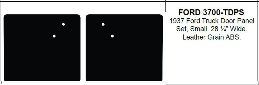 ABS Black interior kit. Includes: (1) Molded headliner, upper cab corner panels on sides of rear rear Glass, strip for below rear window, under dash kick panels, door panels, attaching hardware and installation instructions. Because of early and late versions of the 1937 the doors slightly differed. Scroll down and see the additional views of the door panels available. Upon your placement of an order, we will contact you on the proper door panel need for your truck.
