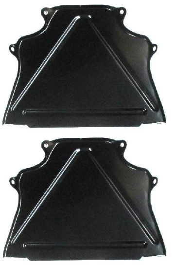 These sheet metal panels are painstakingly made with exact detail, die-stamped to perfection, and fit like a glove. Panels fit behind each wheel, protecting inner fender as well as supporting it. Painted black and ready to install. Two piece set.
