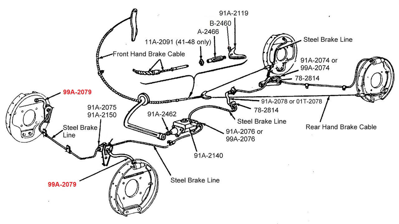 Hydraulic Brake Hose, Front, 99A-207915-3/4" long, 1939-1948 cars and 1939-1947 pickups & trucks, 2 required per vehicleSKU: 99A-2079 $14.00 Qty: Add to cart Custom wishlist OKAdd to wishlistEmail a friendProducts specificationsAttribute nameAttribute valuePer Car2Year1939-1948Year Truck1939-1947Customers who bought this item also bought Copper "O" Ring Gasket, 91A-2149.453" ID x .687", OD required to seal brake hose to front wheel cylinders & between 91A-2150 brake line bolt & 91A-2075 brake line connector, 1939-1948$0.75Add to cart Custom wishlist OKAdd to wishlist Brake Hose & Brake Cable Retainer Clip, 78-28141939-1948 passenger, 1937-1947 pickups, 3-5 required$1.50Add to cart Custom wishlist OKAdd to wishlist Copper "O" Ring Gasket, 91A-2152.51 ID x .81 OD, cars & pickups, 1939-1948$0.75Add to cart Custom wishlist OKAdd to wishlist Hydraulic Brake Hose, Rear, 91A-20788-3/4" long, 1939-1948 passenger and 1939-1941 1/2 ton pickups$12.00Add to cart Custom wishlist OKAdd to wishlist Copper "O" Ring Gasket, 91A-2151.61 ID x .81 OD, cars & pickups, 1939-1948$0.75Add to cart Custom wishlist OKAdd to wishlist Brake Shoe Return Spring, 91A-2035For hydraulic brakes, 6 1/2" long, 1939-1948$3.50Add to cart Custom wishlist OKAdd to wishlistRelated products Copper "O" Ring Gasket, 91A-2149.453" ID x .687", OD required to seal brake hose to front wheel cylinders & between 91A-2150 brake line bolt & 91A-2075 brake line connector, 1939-1948$0.75Add to cart Custom wishlist OKAdd to wishlist