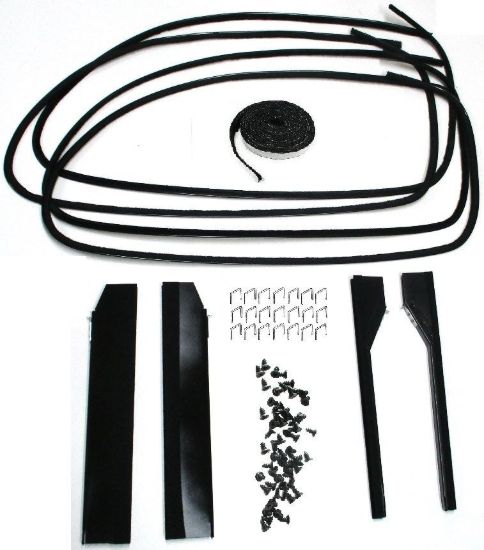 One kit services both doors. Made in U.S.A. Includes the pre-bent one sided felt (cat whiskers), felted lower metal channels with clips attached, upper felt seal and installation screws. For customers wanting the original snap in clips used on the cat whiskers, order a separate clip kit part number 48-703536-A for clips on the door body and 48-703536-B for the clips on the garnish molding.