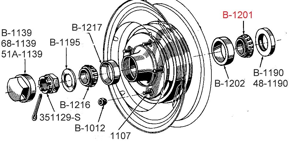 Front Wheel Inner Bearing, B-1201Cars & pickups 1932-1948. COMPLETE SET B-1201-17-S ALSO AVAILABLEAvailability: 2 in stockSKU: B-1201 $19.00 Qty: Add to cart Custom wishlist OKAdd to wishlistEmail a friendProducts specificationsAttribute nameAttribute valuePer Car2Year1932-1948Customers who bought this item also bought Brake Shoe Return Spring, 91A-2035For hydraulic brakes, 6 1/2" long, 1939-1948$3.50Add to cart Custom wishlist OKAdd to wishlist Front Wheel Inner Race, B-1202Cars & pickups 1932-1948. COMPLETE SET B-1201-17-S ALSO AVAILABLE$14.00Add to cart Custom wishlist OKAdd to wishlist Front Wheel Outer Bearing, B-1216Cars & pickups 1932-1948. COMPLETE SET B-1201-17-S ALSO AVAILABLE$26.25Add to cart Custom wishlist OKAdd to wishlist Front Wheel Outer Race, B-1217Cars & pickups 1932-1948. COMPLETE SET B-1201-17-S ALSO AVAILABLE$11.25 Hand Brake Pin Kit, 91A-2105-KKit includes (2) 51A-2107 pins, (2) 91A-2105 pins, (4) 91A-2106 U clips plus (4) wavy washers. Cars & pickups, 1939-1948$12.00Add to cart Custom wishlist OKAdd to wishlistRelated products Front Wheel Bearing Set, B-1201-17-SCars & pickups 1932-1948. Does 1 wheel (2 sets required per vehicle)$65.00Add to cart Custom wishlist OKAdd to wishlist Front Wheel Inner Race, B-1202Cars & pickups 1932-1948. COMPLETE SET B-1201-17-S ALSO AVAILABLE$14.00Add to cart Custom wishlist OKAdd to wishlist