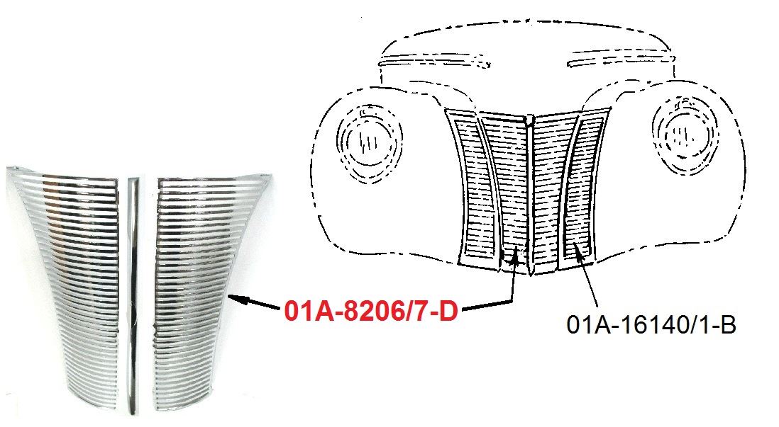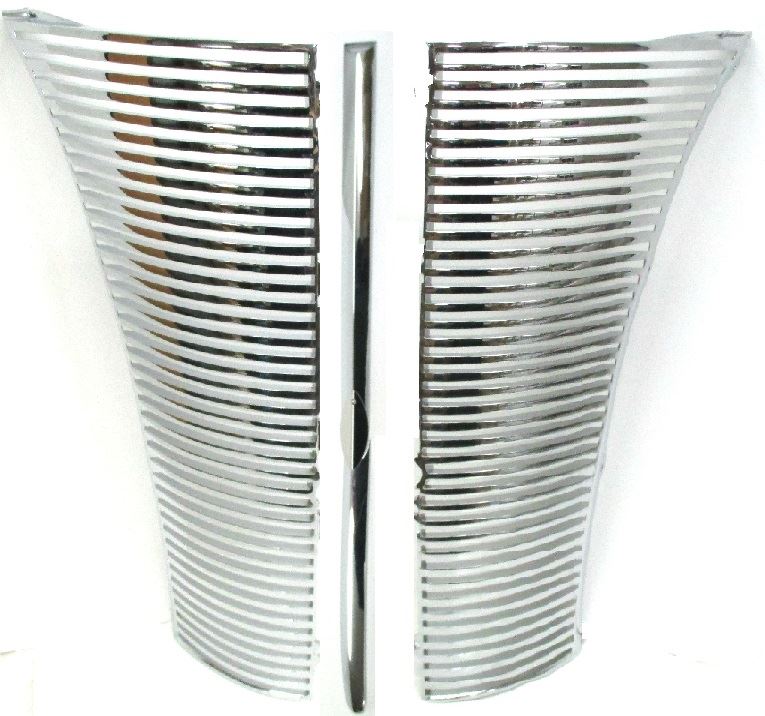 Chrome plated by Bob Drake, 2 grille sides & 2 piece center strip, crank hole and cover, 1940 Deluxe. Excellent quality for those show cars. SPECIAL SALE PRICE