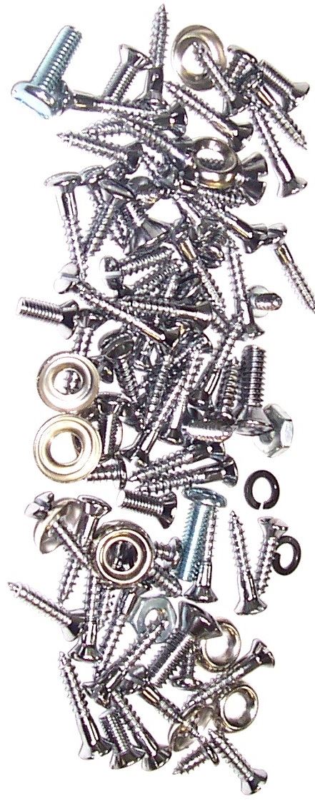 75 Pieces. Kit includes all STAINLESS STEEL screws necessary for the complete interior of the car, including window frame, dash rail, instrument panel, door step, and dove tail screws, also when required the tube nuts. Made in the USA.