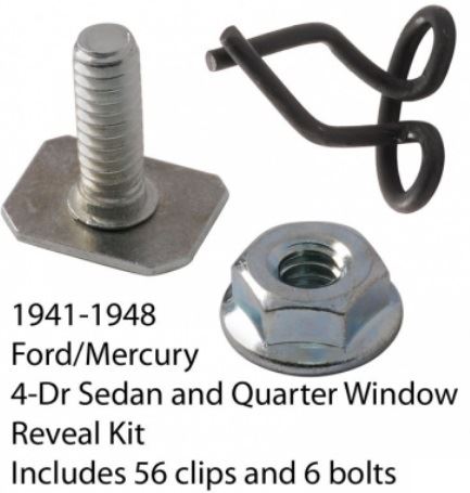 Door & Qtr Reveal Molding Clips, 11A-20009Fordor, straight section includes 56 clips & 6 bolts with nuts, 1941-1948 carAvailability: 1 in stockSKU: 11A-20009 $40.00 Qty: Add to cart Custom wishlist OKAdd to wishlistEmail a friendUsed for door glass & quarter glass window moldingsProducts specificationsAttribute nameAttribute valuePer Car1 SetYear1941-1948 Fordor CarCustomers who bought this item also bought Gas Tank Door Hinge Spring, 11A-16377-CHinge spring, 1941-1948 passenger$7.00Add to cart Custom wishlist OKAdd to wishlist