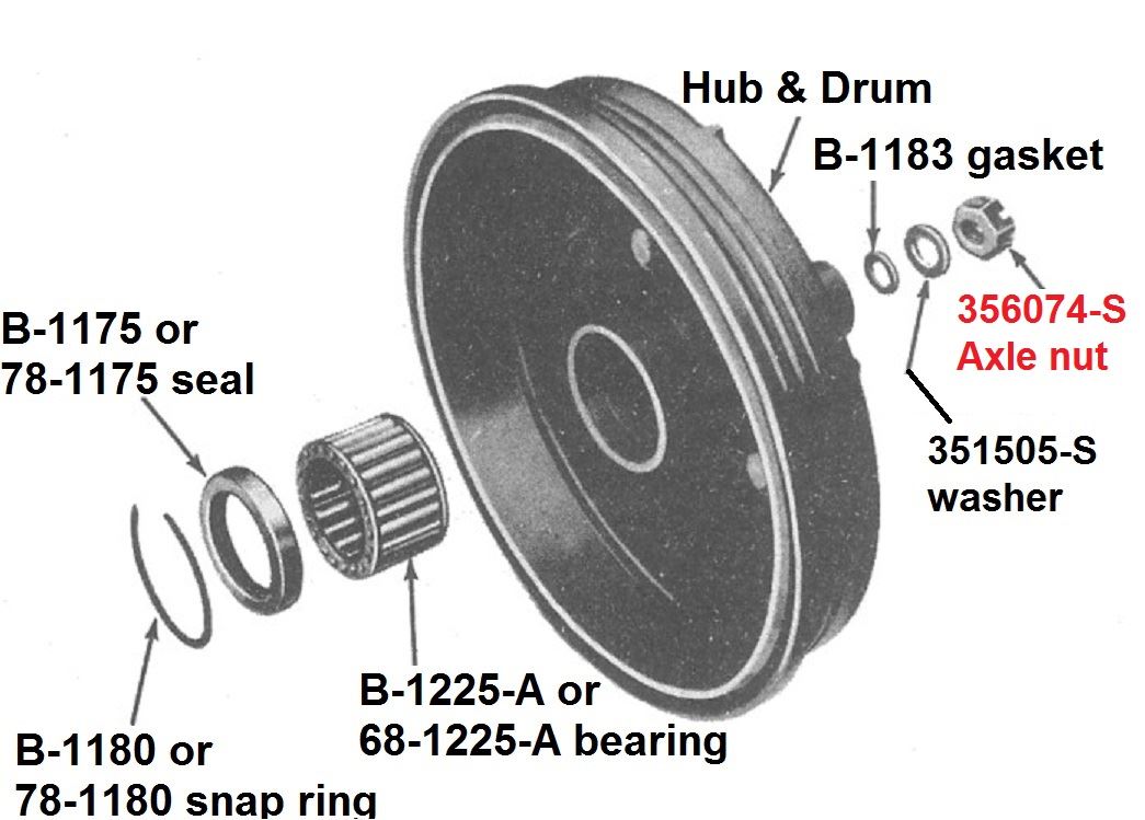 Rear Axle Nut, 356074-SCars and pickups, 5/8-18 thread, 1928-1948.SKU: 356074-S $4.75 Qty: Add to cart Custom wishlist OKAdd to wishlistEmail a friendProducts specificationsAttribute nameAttribute valuePer Car2Year1928-1948Customers who bought this item also bought Wheel Nut, B-1012Cadmium plated, 1932-1956.$1.50Add to cart Custom wishlist OKAdd to wishlist Rear Wheel Hub Fiber Gasket, B-1183Cars and pickups, 1928-1948$1.50Add to cart Custom wishlist OKAdd to wishlist Rear Axle Steel Washer Set, 351505-SCars and pickups, pair, 1928-1948.$3.00Add to cart Custom wishlist OKAdd to wishlist Rear Wheel Grease Seal, 78-1175Cars and pickups, 2.84" OD, 1938-1948$4.50Add to cart Custom wishlist OKAdd to wishlist Rear Wheel Bearing, 68-1225-ARear roller bearing, 2.84" OD, 1-21/32" long, 1936-1948.$45.00Add to cart Custom wishlist OKAdd to wishlist Rear Wheel Bearing Snap Ring, 78-1180Cars and pickups, 3" OD, 1938-1948$3.00Add to cart Custom wishlist OKAdd to wishlist