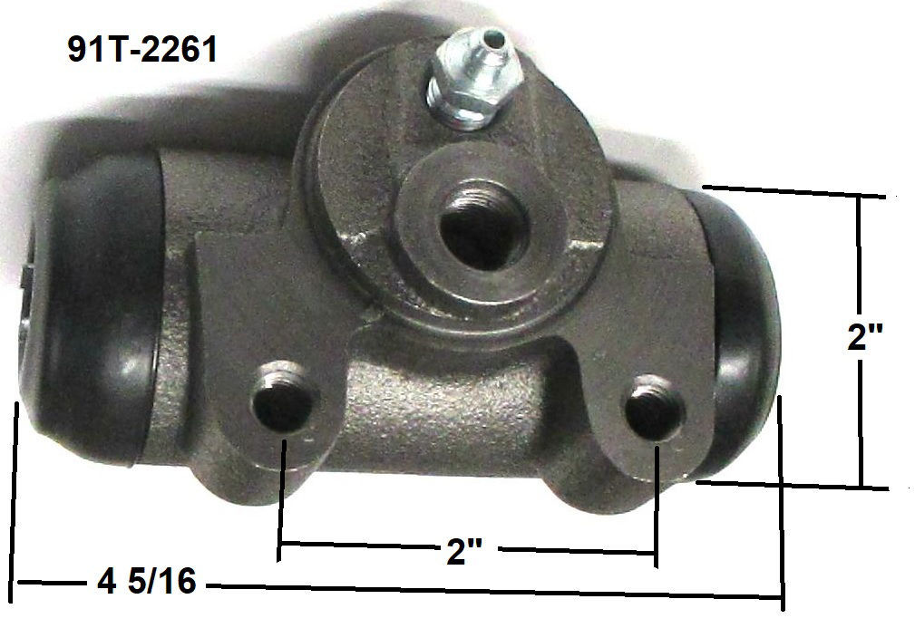 Rear Wheel Cylinder, LH or RH, 91T-22611 1/2 TON TRUCK ONLY, REAR, 1-1/2" bore, 2 required, 1939-1947SKU: 91T-2261 $80.00 Qty: Add to cart Custom wishlist OKAdd to wishlistEmail a friendProducts specificationsAttribute nameAttribute valuePer Car2Year1939-1947Customers who bought this item also bought Copper "O" Ring Gasket, 91A-2151.61 ID x .81 OD, cars & pickups, 1939-1948$0.75Add to cart Custom wishlist OKAdd to wishlist Copper "O" Ring Gasket, 91A-2152.51 ID x .81 OD, cars & pickups, 1939-1948$0.75Add to cart Custom wishlist OKAdd to wishlist Copper "O" Ring Gasket, 91A-2149.453" ID x .687", OD required to seal brake hose to front wheel cylinders & between 91A-2150 brake line bolt & 91A-2075 brake line connector, 1939-1948$0.75Add to cart Custom wishlist OKAdd to wishlist Headlight Bulb, 6 Volt, 48-13007-650/32 C.P., 1935-1939 car & pickup.$5.50Add to cart Custom wishlist OKAdd to wishlist Front Wheel Cylinder, RH or LH, 92Y-2261BIG TRUCK, 1 ton rear & 1 1/2 ton front, 1-3/8" bore, 2 required, 1939-1947$56.00Add to cart Custom wishlist OKAdd to wishlist Brake Line Connector Bolt, 91A-2150Front, fits through 91A-2075, use gasket 91A-2149, passenger 1939-1948, commercial 1939-1941$6.50Add to cart Custom wishlist OKAdd to wishlist